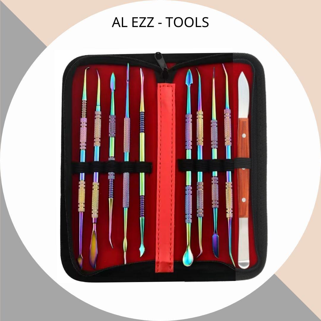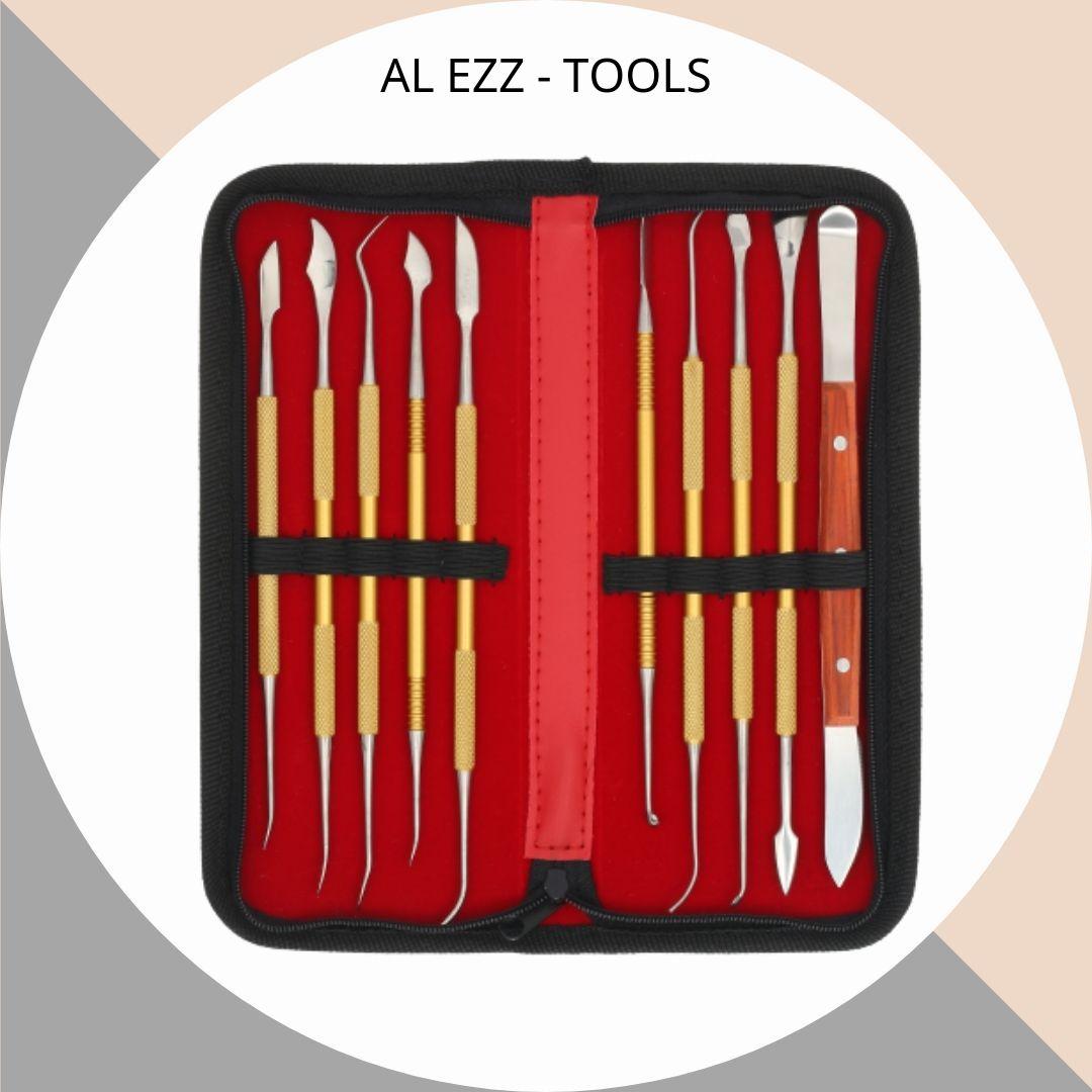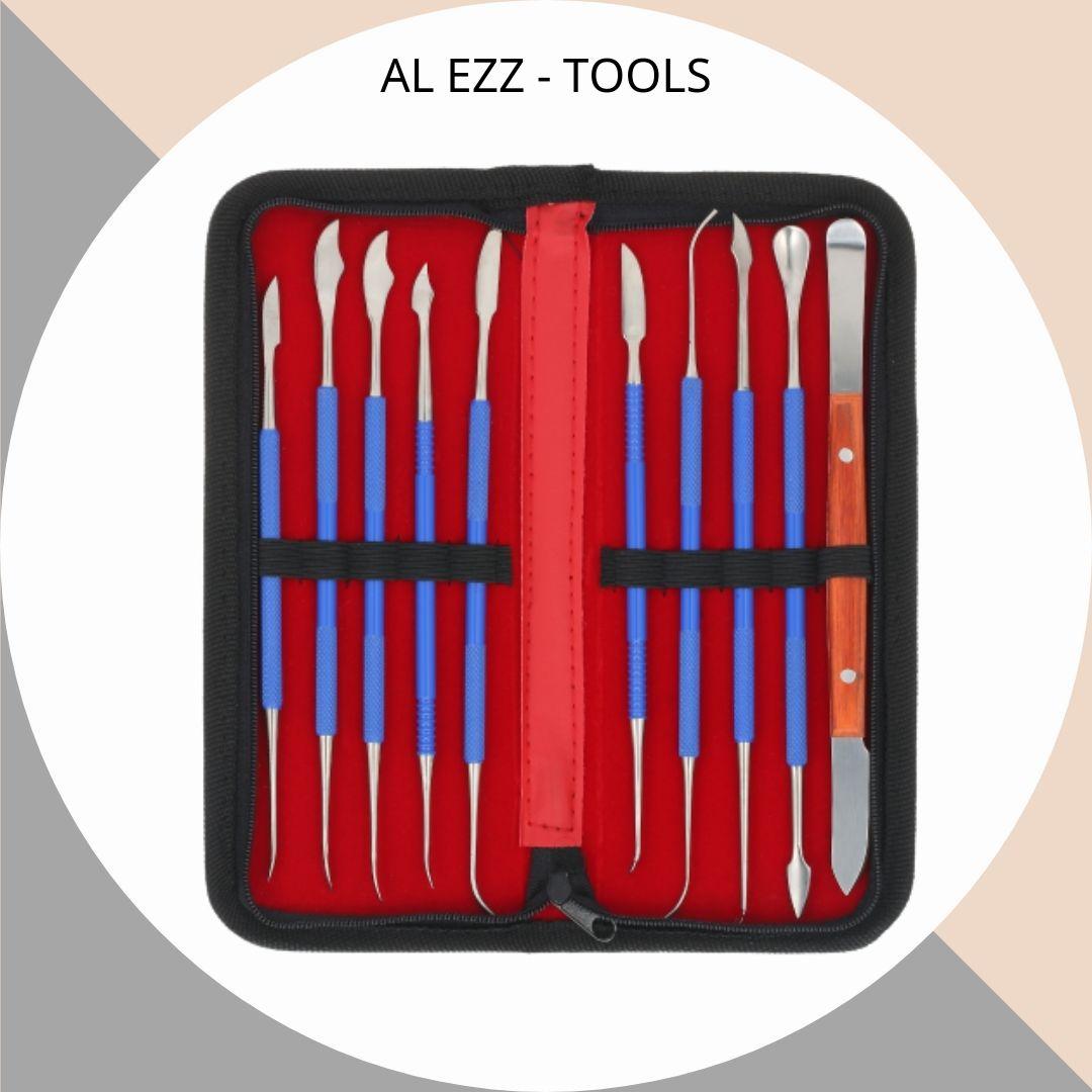 طقم متكامل من أدوات النحت والتشكيل، مكون من 10 قطع مختلفة من الستانلس ستيل،