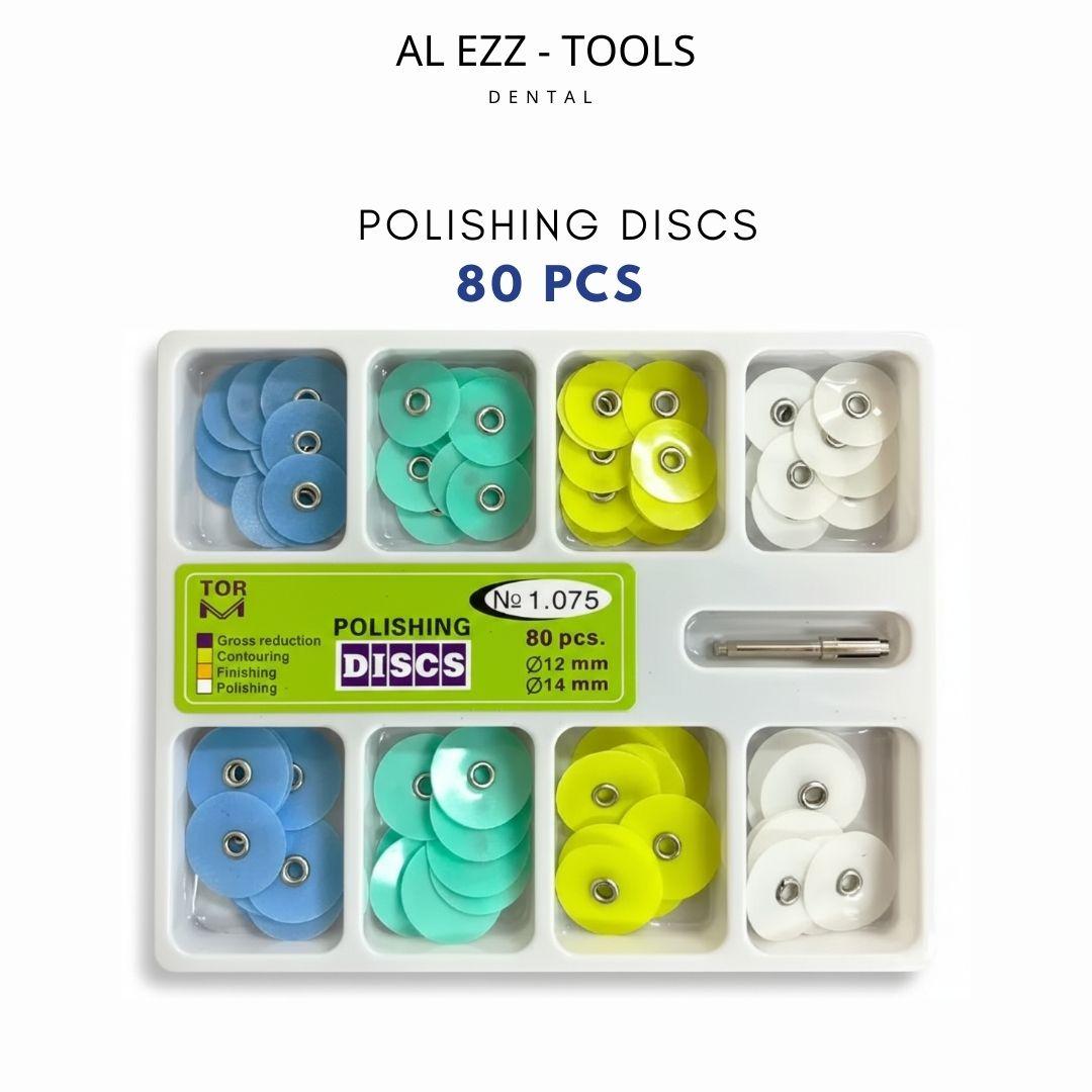 طقم أقراص تلميع احترافي مكوّن من 80 قطعة بجودة عالية، مناسب لأعمال تشطيب وتلميع الحشوات والتركيبات بكل دقة وسهولة.